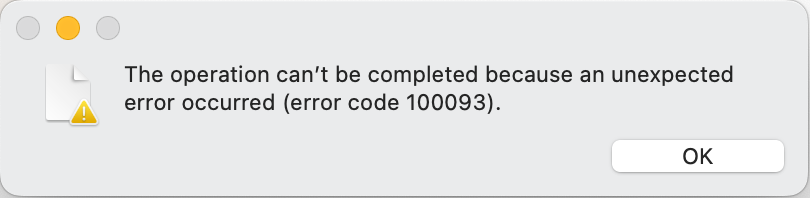 MacOS 13 Ventura 사용자를 위한 알림: 새로 출시된 macOS 13 Ventura(출시일 2022년 10월 22일)에서 Finder 응용 프로그램을 사용하여 끌어서 놓기 옵션을 사용하여 micro:bit .hex 파일을 전송 하려는 모든 사용자에게 다음 오류가 표시됩니다.