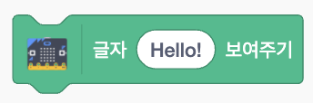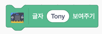 같은 방법으로 micro:bit 코드 블록에서 글자 블록을