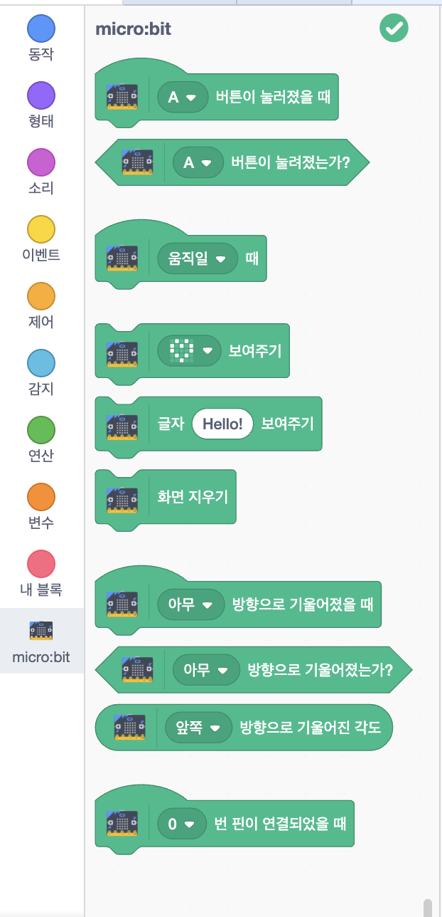 왼쪽에 micro:bit 코드 블록을 클릭하고