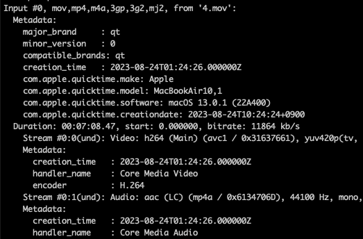 Input #0, mov,mp4,m4a,3gp,3g2,mj2, from 'input.mp4':