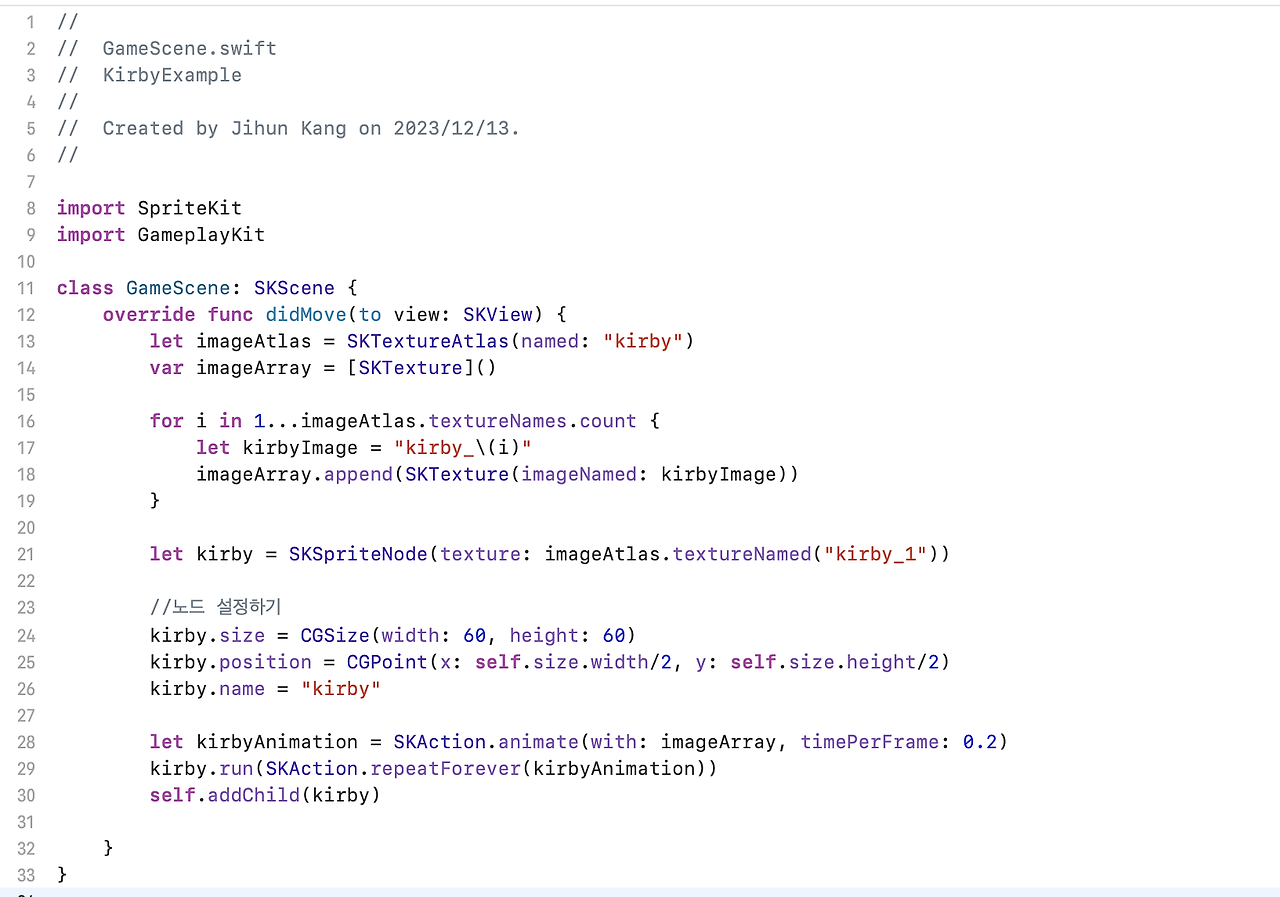 kirby.run(SKAction.repeatForever(kirbyAnimation))