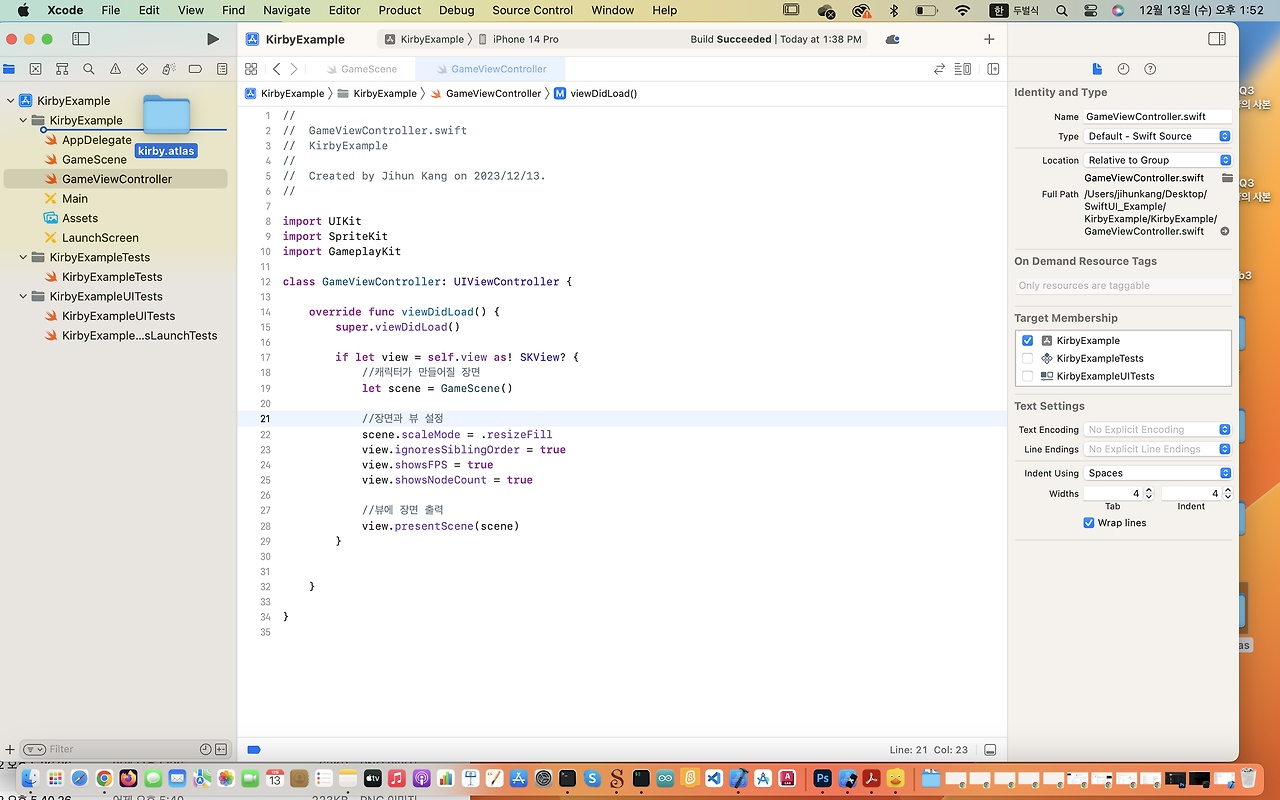 다음에 사용할 SKTextureAtlas클래스는 .atlas폴더를 알아서 찾아 만들어주기 때문에, 폴더 이름에 .atlas를 붙여주었습니다.