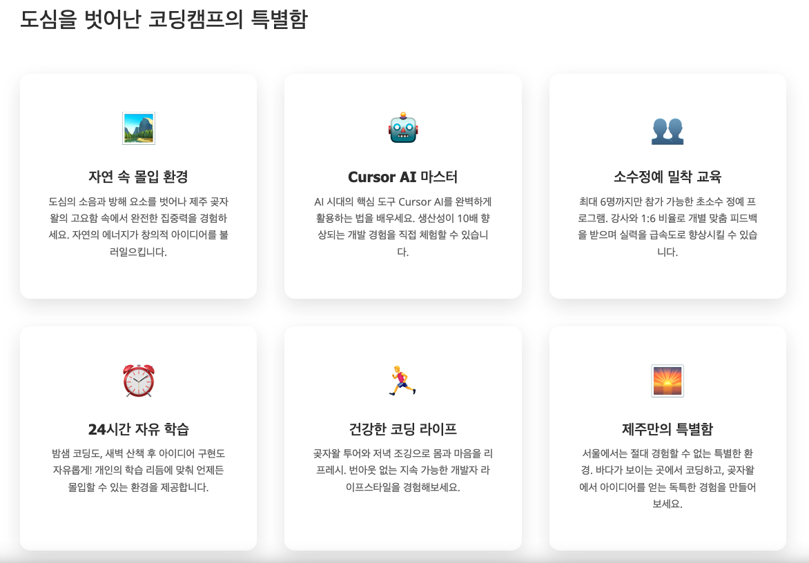 이 특별한 경험은 선착순 6명만 가능합니다. 서울이 아닌 제주에서, AI와 함께 성장하는 3일간의 여정을 놓치지 마세요.