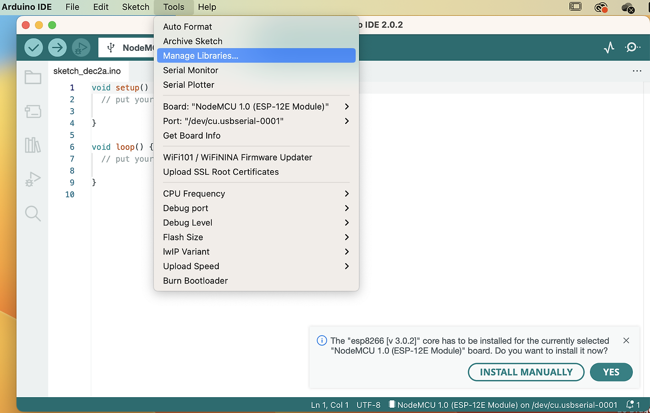 Arduino IDE에서 스케치 > 라이브러리 포함 > 라이브러리 관리로 이동합니다. 모달 내의 검색 표시줄에서 해당 이름을 검색하여 다음 각 라이브러리를 설치합니다. 상자 오른쪽 하단에 라이브러리를 설치할 수 있는 버튼이 나타납니다.